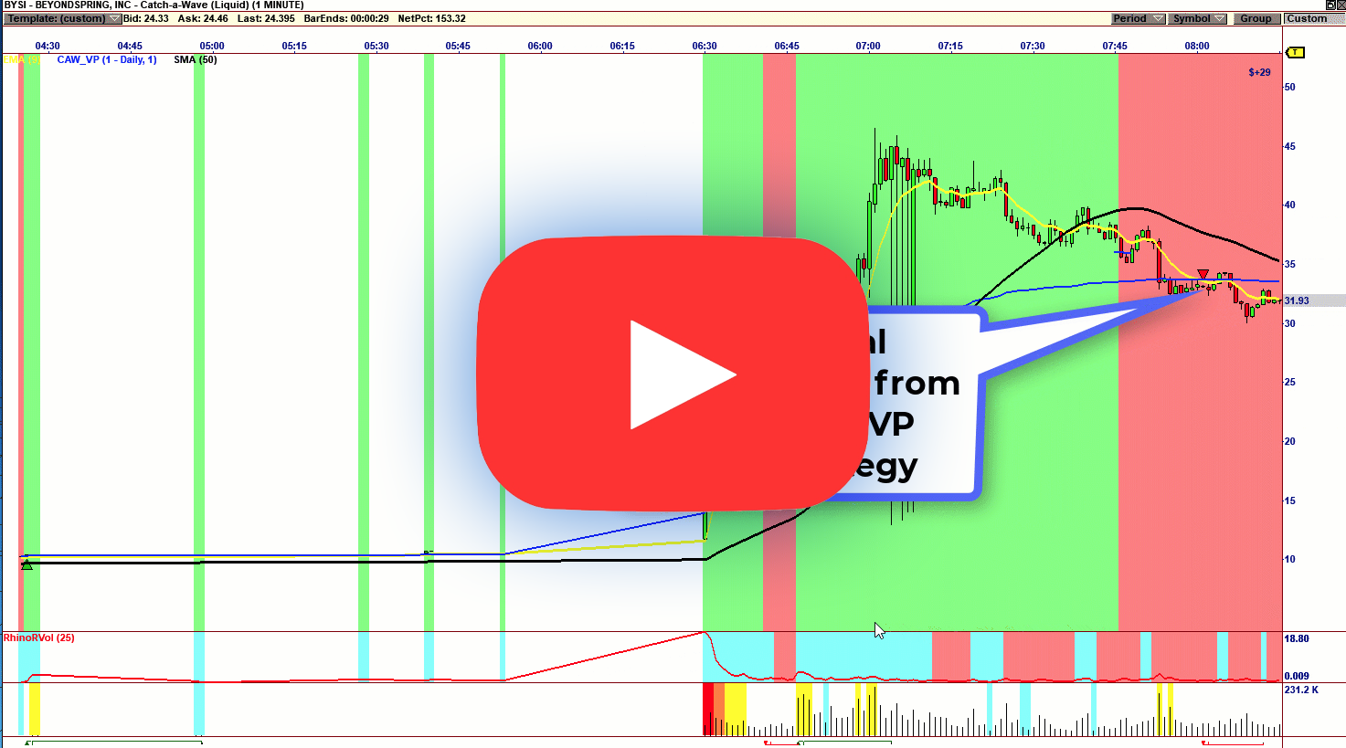 These stocks are immediately passed to VisualTrader so that the Catch a Wave Strategies can find the optimal entry and manage the trade.